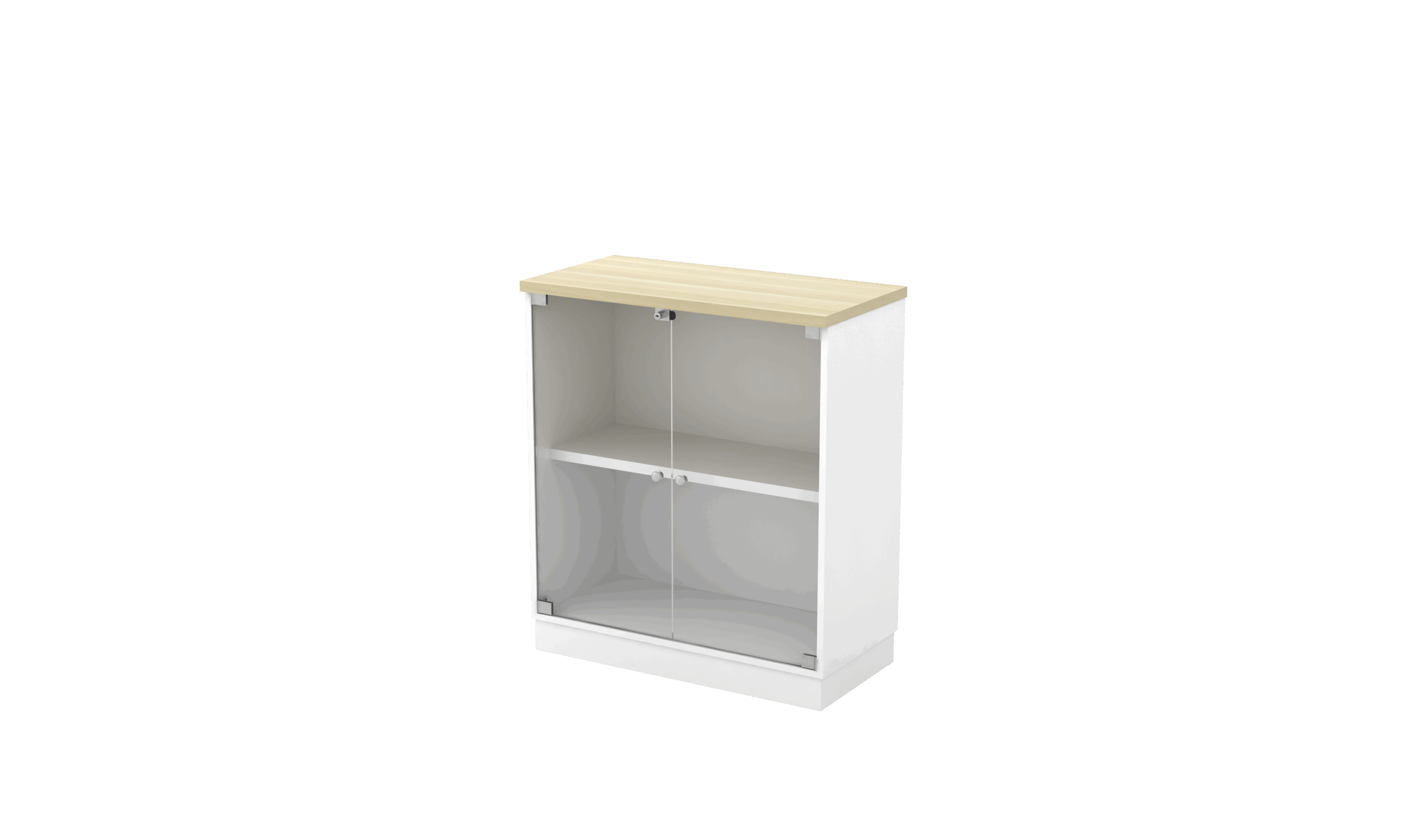 Elegant tall cabinet with swinging glass doors for both visibility and secure storage.